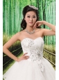 This lovely bridal style is sweet as spun sugar and shimmering with promise. The strapless bodice features a sweetheart neckline and sequined flowers on the bodice bring amazing visual impacts. The skirt features lavish, light-as-air layering from dropped waistline to floor length with delicate appliques trimed the skirt. A lace up back secures the dress in place.