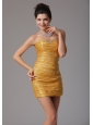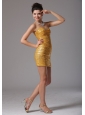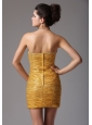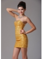 Look amazing from every angle by slipping into this unforgettable design! The gold shinning paillette through the dress for accent creats a fantastic effect. The modest sweetheart decorated with dazzling beading represents our professional technique. The mini skirt will show your slim legs and glittering shoes. A hidden zipper makes for easy off and on and secures the dress in place.