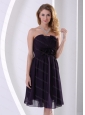 This is a simple yet elegant prom dress. All eyes will be on you in this sexy knee-length prom dress. The ruched bodiceis accented with a low V neckline plugging beaded fabric. The flowers embellishes the mid-section. The knee-length skirt sways freely when you dance. A zipper back makes for easy off and on and secures the dress in place.
