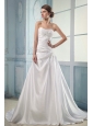 2013 Elegant Wedding Dress With Appliques and Ruching Court Train A-line