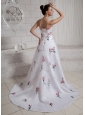 2013 Embroidery A-line Wedding Dress With Court Train For Custom Mades