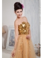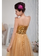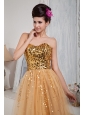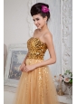 2013 Gold Custom Made Prom Dress / Celebrity Column Sweetheart Floor-length Tulle Sequins
