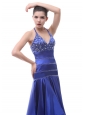 2013 Halter Beaded A-line High-low For Royal Blue Prom Dress