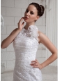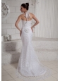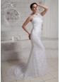 2013 Halter Hand Made Flowers Mermaid Wedding Dress With Brush Train For Custom Made