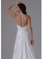2013 Halter Ruched Bodice and Beading Wedding Dress With Brush Train