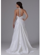Home >  Wedding Dresses >  Elegant Wedding Dresses > 2013 Halter Ruched Bodice and Beading Wedding Dress With Brush Train