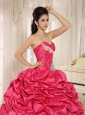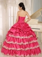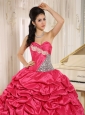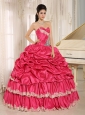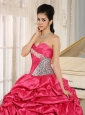 2013 Hot Pink Beaded Appliques and Pick-ups Quinceanera Dress For Custom Made In Koloa City Hawaii
