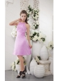 2013 Lavender Satin High-neck Knee-length Dama Dress