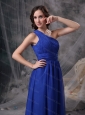 2013 Long Blue One Shoulder Ruch Dama Dress For Quinceanera