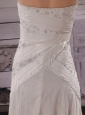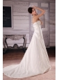 A very special dress for your unique wedding!This white wedding dress is completed with a sweetheart neckline and bright beading on the bust. Asymmetrical bands twisted form a dramatice silhouette. With great grace and elegance, the dress is eye catching. The floor-length skirt has a brush train and sheer, dreamful fabric overlay , which makes the dress look noble.