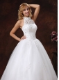 2013 Luxurious Halter Appliques With Beading For Ball Gown Wedding Dress