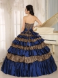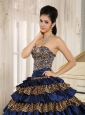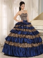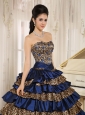 2013 Navy Blue Leopard Ruffled Layers and Appliques With Beading Quinceanera Dress For Custom Made Hilo City Hawaii