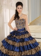 Home >  Quinceanera Dresses >  Fashionable Quinceanera Dresses > 2013 Navy Blue Leopard Ruffled Layers and Appliques With Beading Quinceanera Dress For Custom Made Hilo City Hawaii