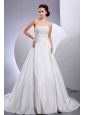 2013 New Arrival Wedding Dress With Appliques and Ruching A-line Chapel Train