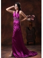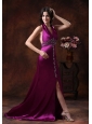 Home >  Prom Dresses >  Sexy Prom Dresses > 2013 New Style Hot In Willcox Arizona High Slit Prom Dress With Fushsia Haler Brush Train Beaded Decorate On Satin