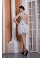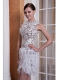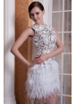 2013 New Style White Column Scoop Feather and Elastic Woven Satin Cocktail Dress Mini-length