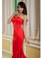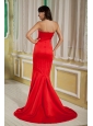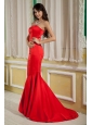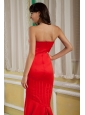 2013 Red Mother Of The Bride Dress Mermaid Strapless Satin Brush Train