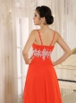 2013 Red New Style In Akron Arkansas Prom Celebrity Dress With Spaghetti Straps Appliques Decorate Waist