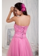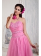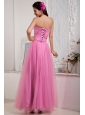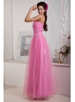 2013 Rose Pink Prom Dress For Custom Made Empire Sweetheart Floor-length Tulle Beading