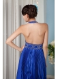 2013 Royal Blue Prom / Celebrity Dress Empire Halter Elastic Woven Satin Beading Brush Train