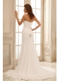 Do you want to be the special and attractive bride? Your dream will come true when you wear this wedding gown. The fitted, strapless bodice made of an all-over ruches. The beadings adorn the waistline. A lace up makes for easy off and on and secures the dress in place. The sweep train completes the chiffon wedding dress.