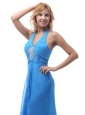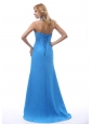 2013 Sky Blue Halter Beaded Prom / Evening Dress With Brush Train For Custom Made