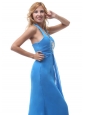 You'll absolutely love this flirty floor-length sky blue ball gown for prom, cocktail or special occasion party. The halter neckline bodice features the dazzling beadings. The empire waistline is lighlighted with the ruches. Romantic fabric forming a handkerchief on one side falling down to the floor. The lace up back and the brush train finish the look of this gorgeous prom dress.