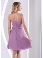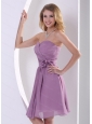 Strapless dresses are one of the sexier styles on the market today. This one features a strapless bodice with sweetheart neckline. The ruched details and the hand flower on the bodice adorn the dress throughout and catch the light in a lovely way. The short skirt with zipper up in the back complete a beautiful shape to the dress.