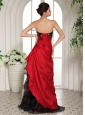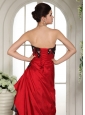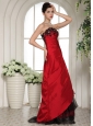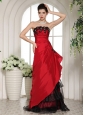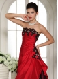 This strapless chic prom gown dress must be the dreaming dress you are looking for. Lacy neckline bodice highlight the body curve. The black appliques decorate the fitted bodice and the hip area. The floor-length taffeta prom dress gives you sense of delicate beauty. If you're looking for a high-end dress without the high-end price tag, this is definitely one you should consider.