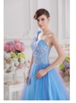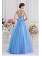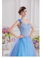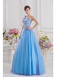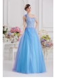 Home >  Quinceanera Dresses >  Luxurious Quinceanera Dresses > 2014 A-line One Shoulder Tulle Blue Quinceanera Dress with Appliques Hand Made Flower