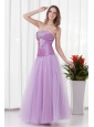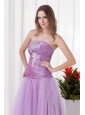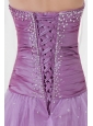 2014 A-line Strapless Lilac Beading Tulle Prom Dress with Lace Up