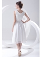 Home >  Wedding Dresses >  Perfect Wedding Dresses > 2014 Cheap Empire Scoop Tea-length Appliques Chiffon Wedding Dress