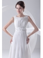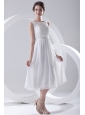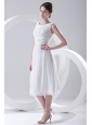 2014 Cheap Empire Scoop Tea-length Appliques Chiffon Wedding Dress
