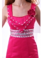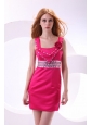2014 Column Square Hot Pink Mini-length Beading Taffeta Prom Dress