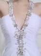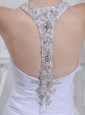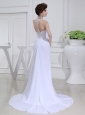 2014 Column V-neck Chiffon Beading Wedding Dress with Sweep Train