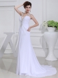 Home >  Wedding Dresses >  Perfect Wedding Dresses > 2014 Column V-neck Chiffon Beading Wedding Dress with Sweep Train