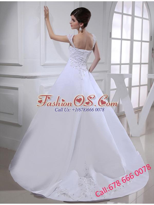 2014 Discount A-line Square Beading and Appliques Wedding Dress