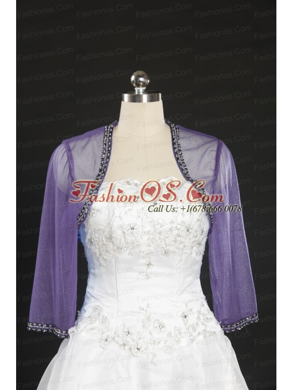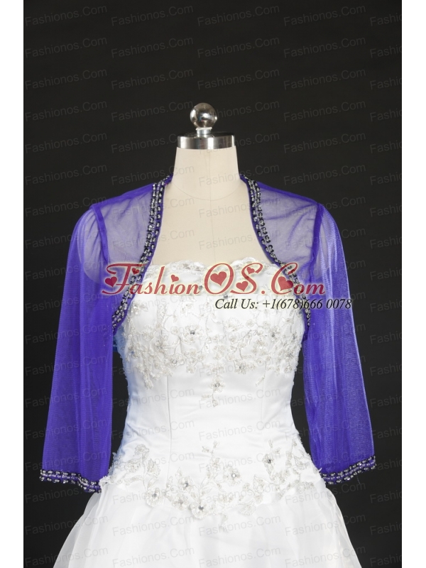 2014 Discount Baby Blue Long Sleeves Wraps with Beading