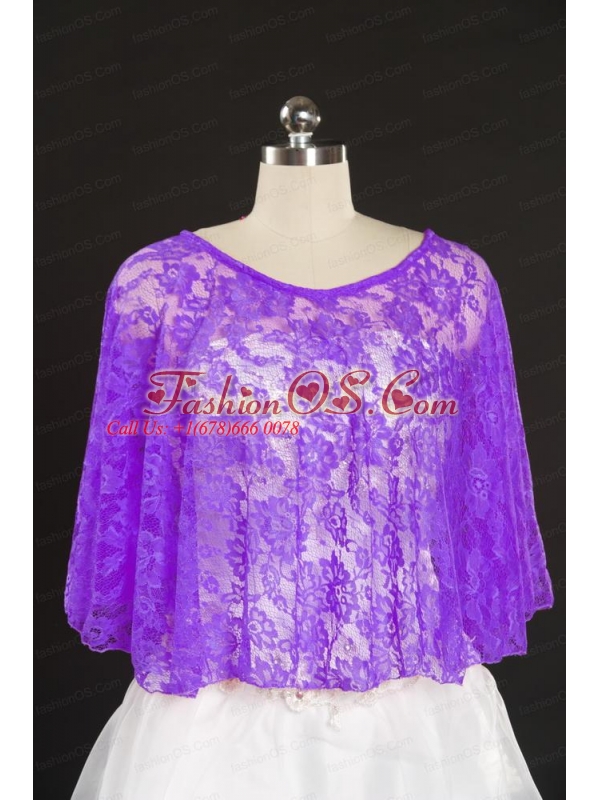 2014 Eggplant Purple Hot Sale Lace Wraps with Beading