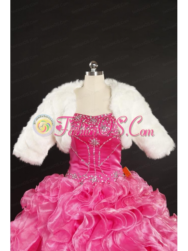2014 Elegant Rabbit Fur White Long Sleeves Wraps