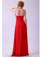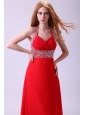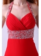 2014 Empire Halter Beading Red Chiffon Floor-length Prom Dress
