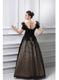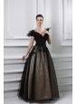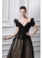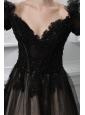 2014 New A-line Appliques V-neck Tulle Black Prom Dress