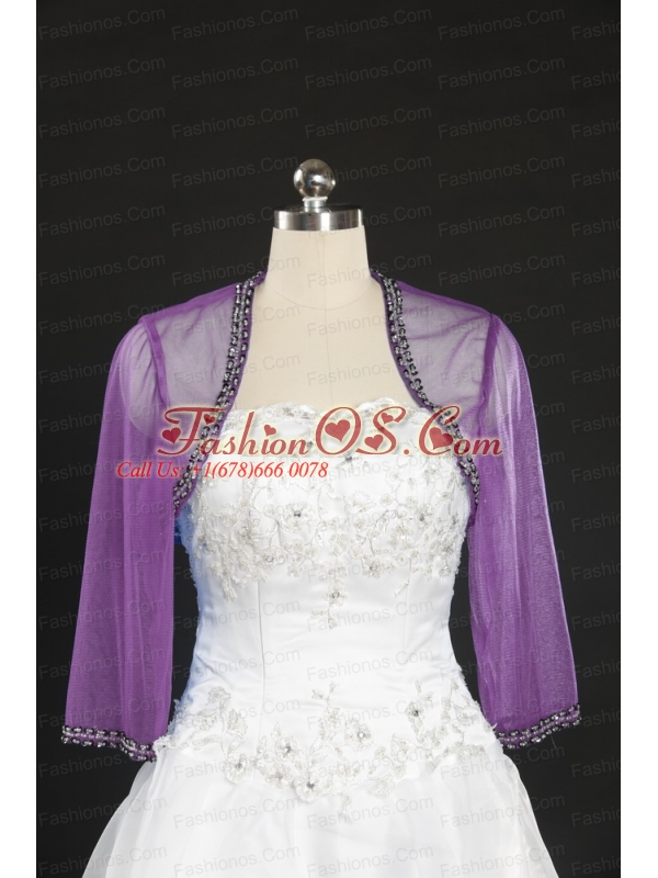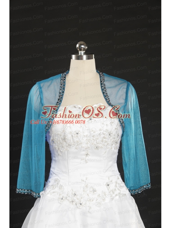 2014 Simple Blue Long Sleeves Wraps with Beading