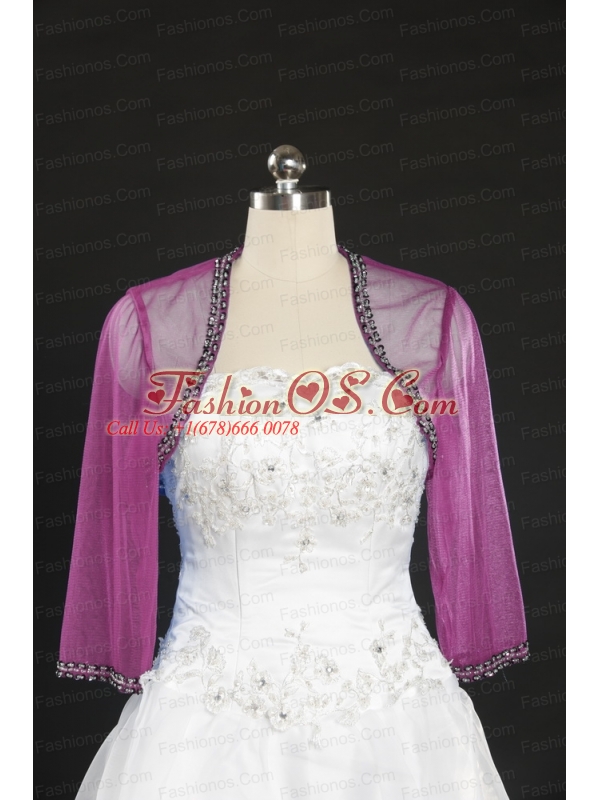 2014 Simple sBeading Fuchsia Wraps with Long Sleeves