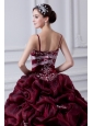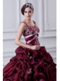 2014 Spaghetti Straps Organza Beading and Appliques Burgundy Quinceanera Dress