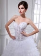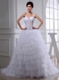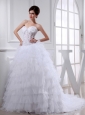 2014 Spring A-line Sweetheart Organza Appliques Ruffled Layers Wedding Dress