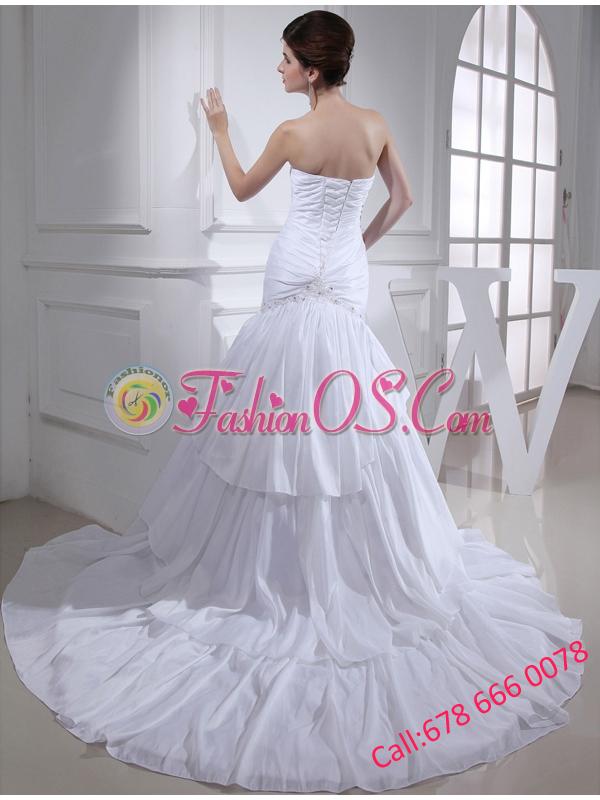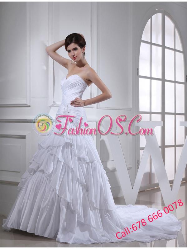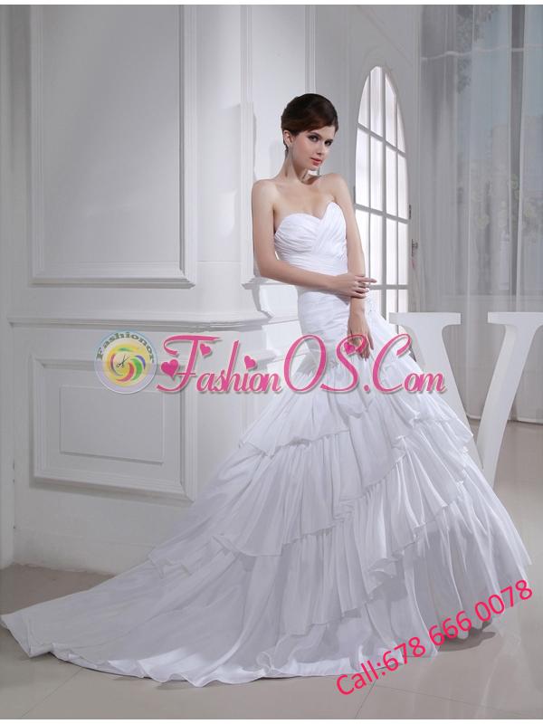 2014 Spring A-line Sweetheart Ruching Ruffled Layers White Wedding Dress