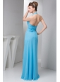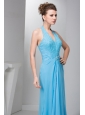 2014 Spring Aqua Blue Empire Halter Beading Chiffon Prom Dress