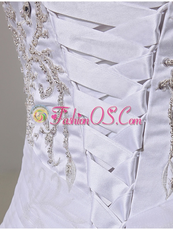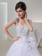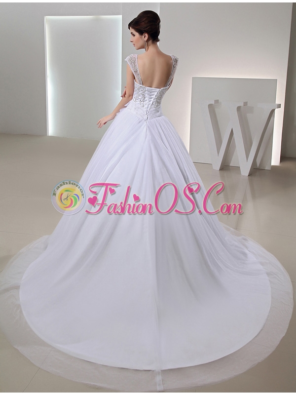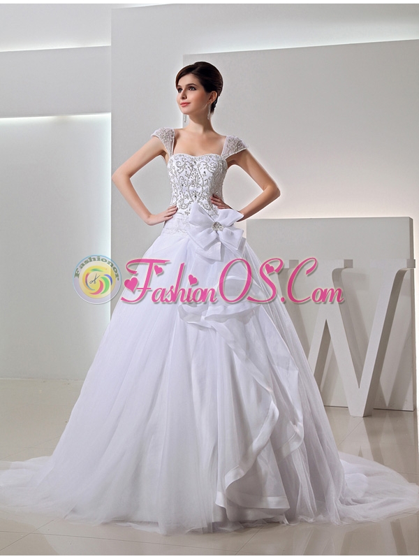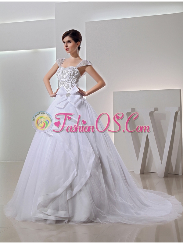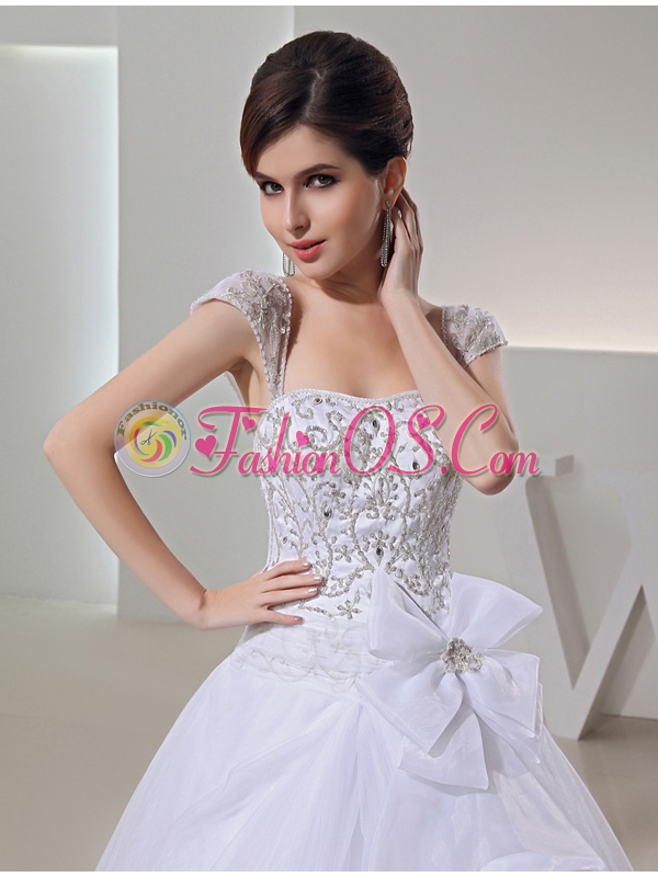 2014 Spring Ball Gown Square Appliques Beading Wedding Dress in White