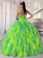 2014 Sweetehart Organza Quinceanera Dresses 2014 with Appliques and Ruffles